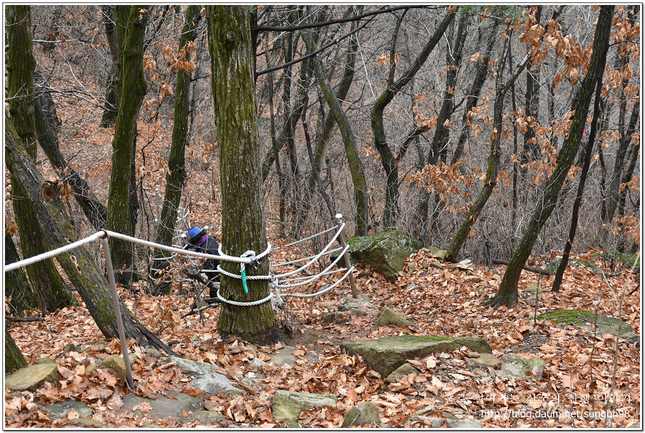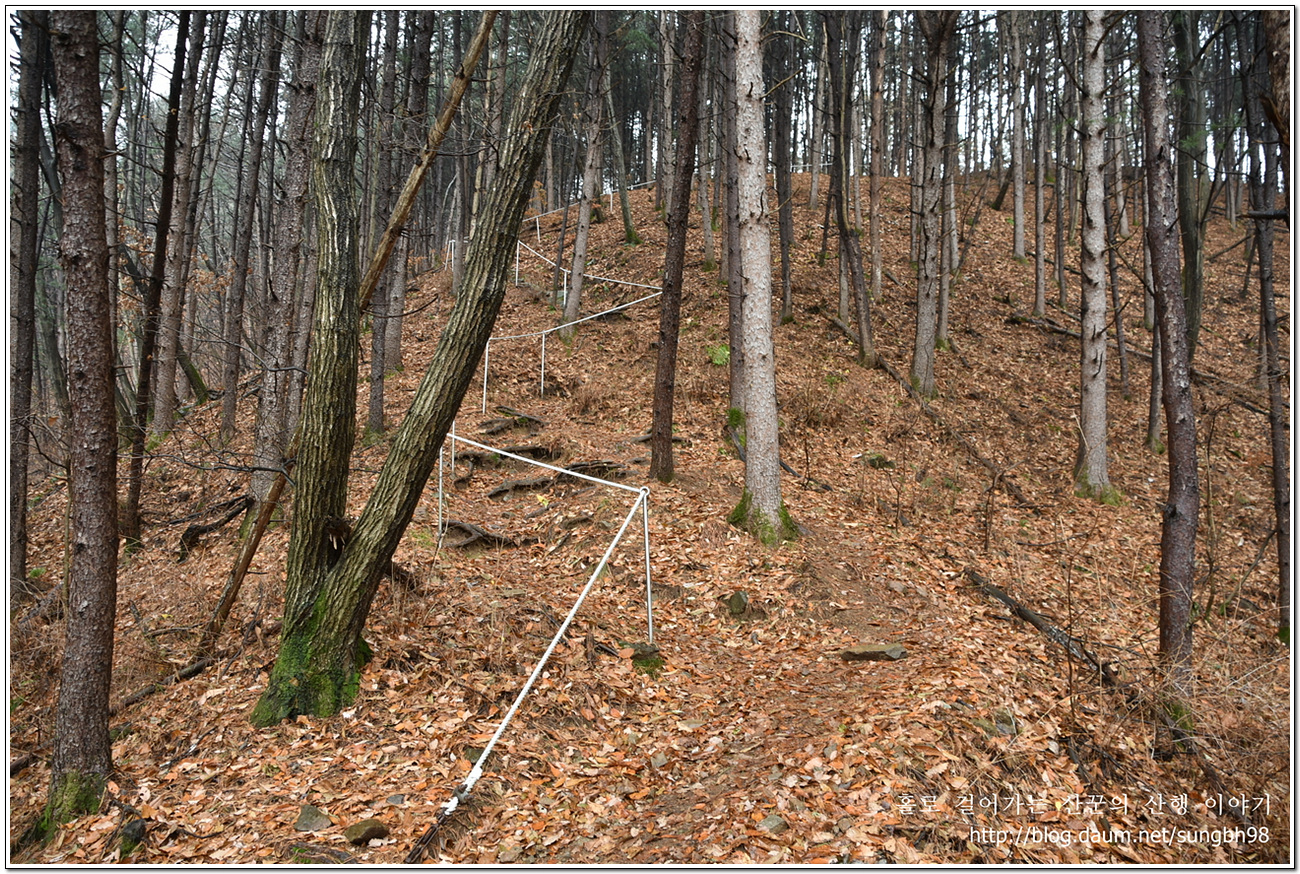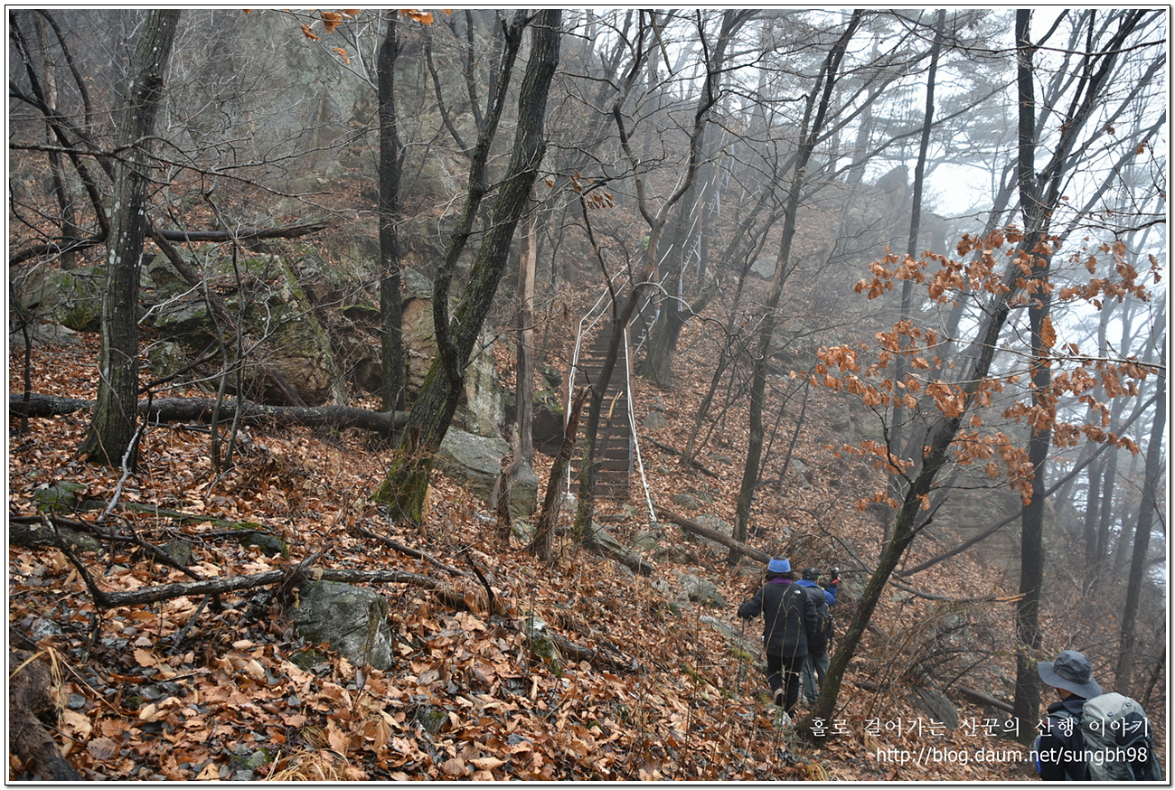 ▼ 부슬부슬 내리던 비는 이제 소강상태이지만 낙엽에 주의해서 제법 비탈진 오르막길을 올라가면