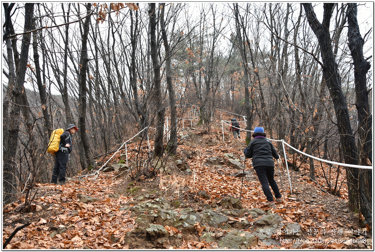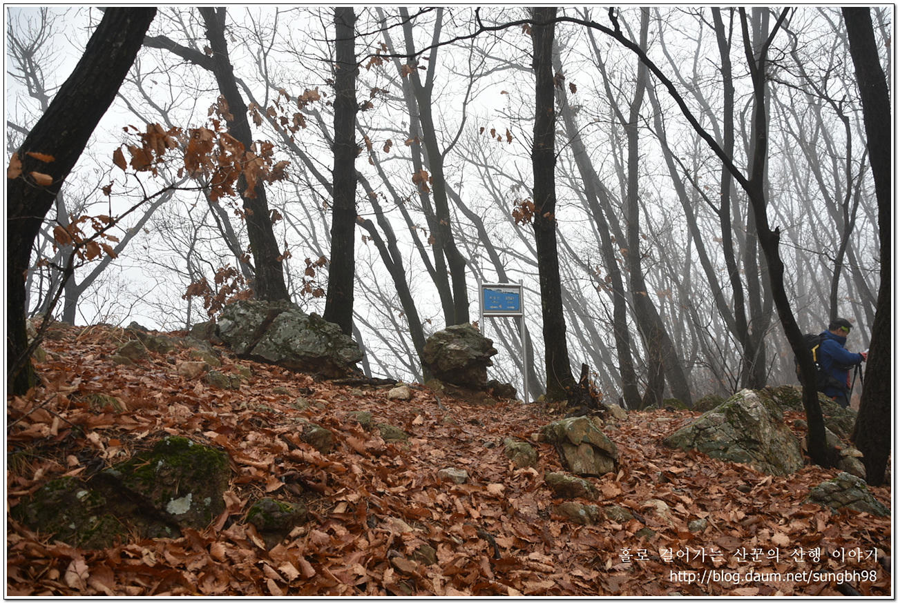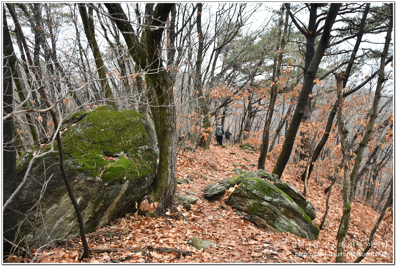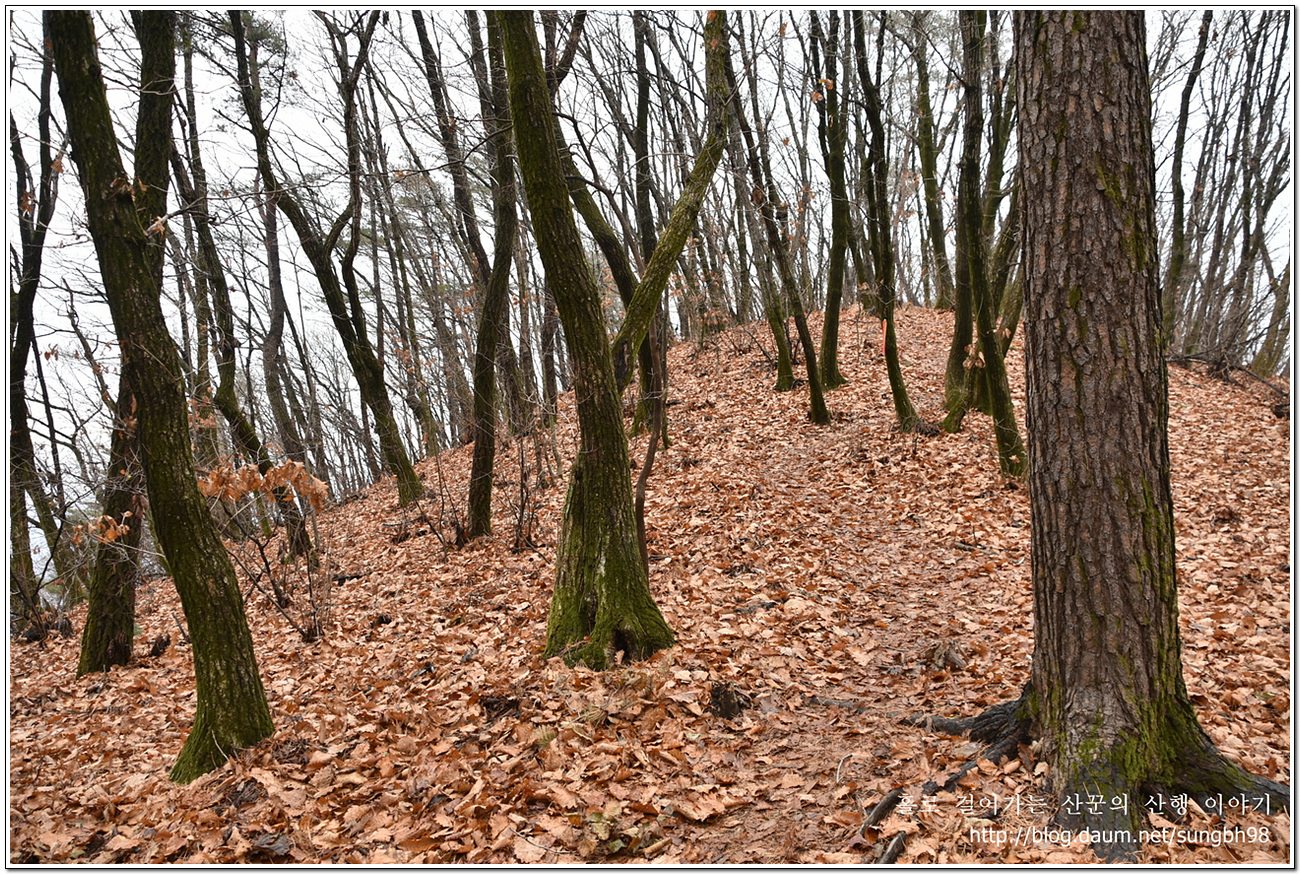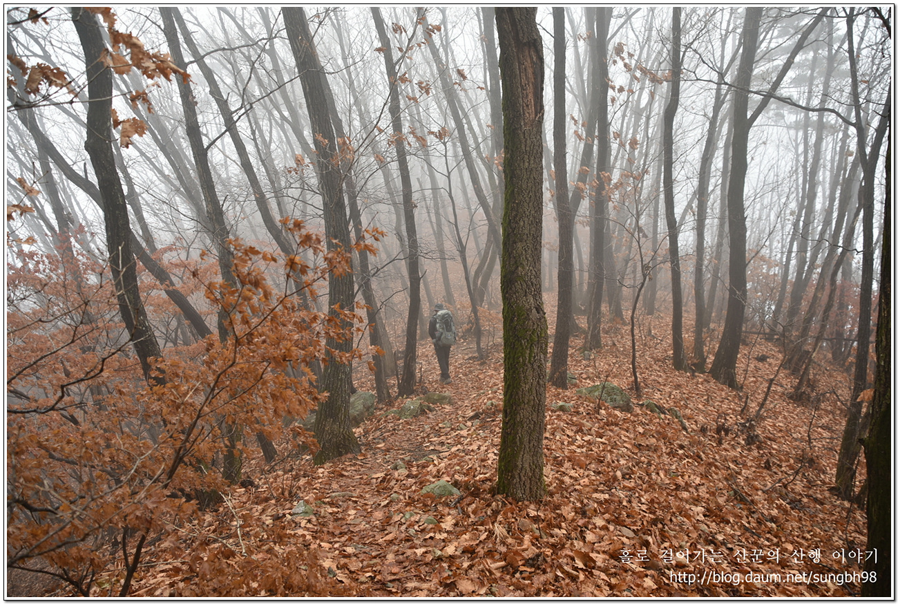 ▼ 낙엽만 수북한 한북연인지맥 마루금의 능선을 따라 걸어간다