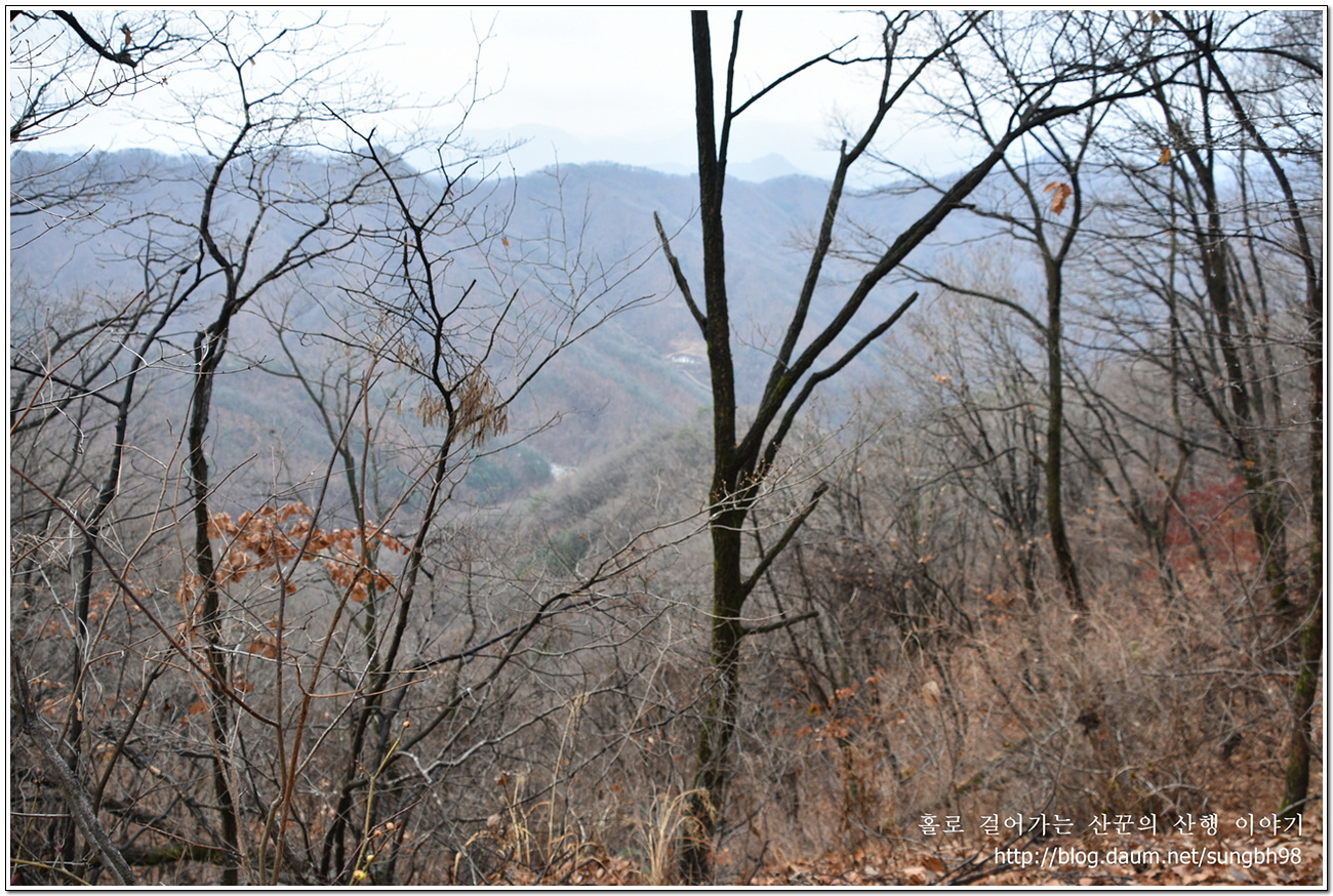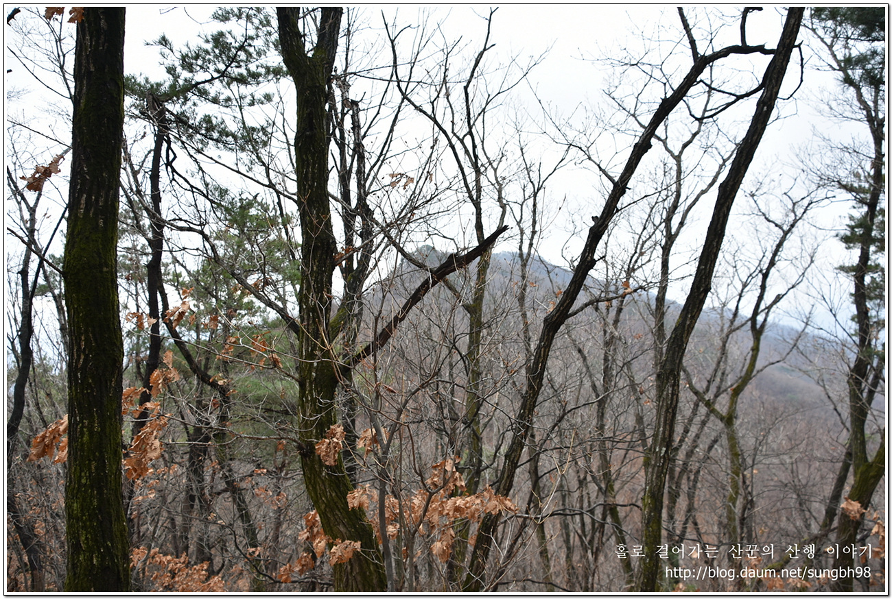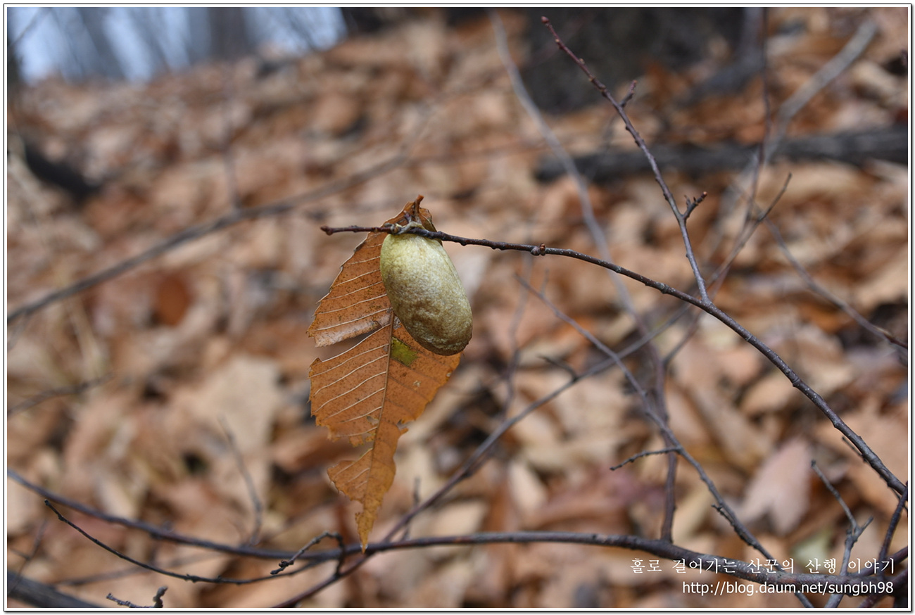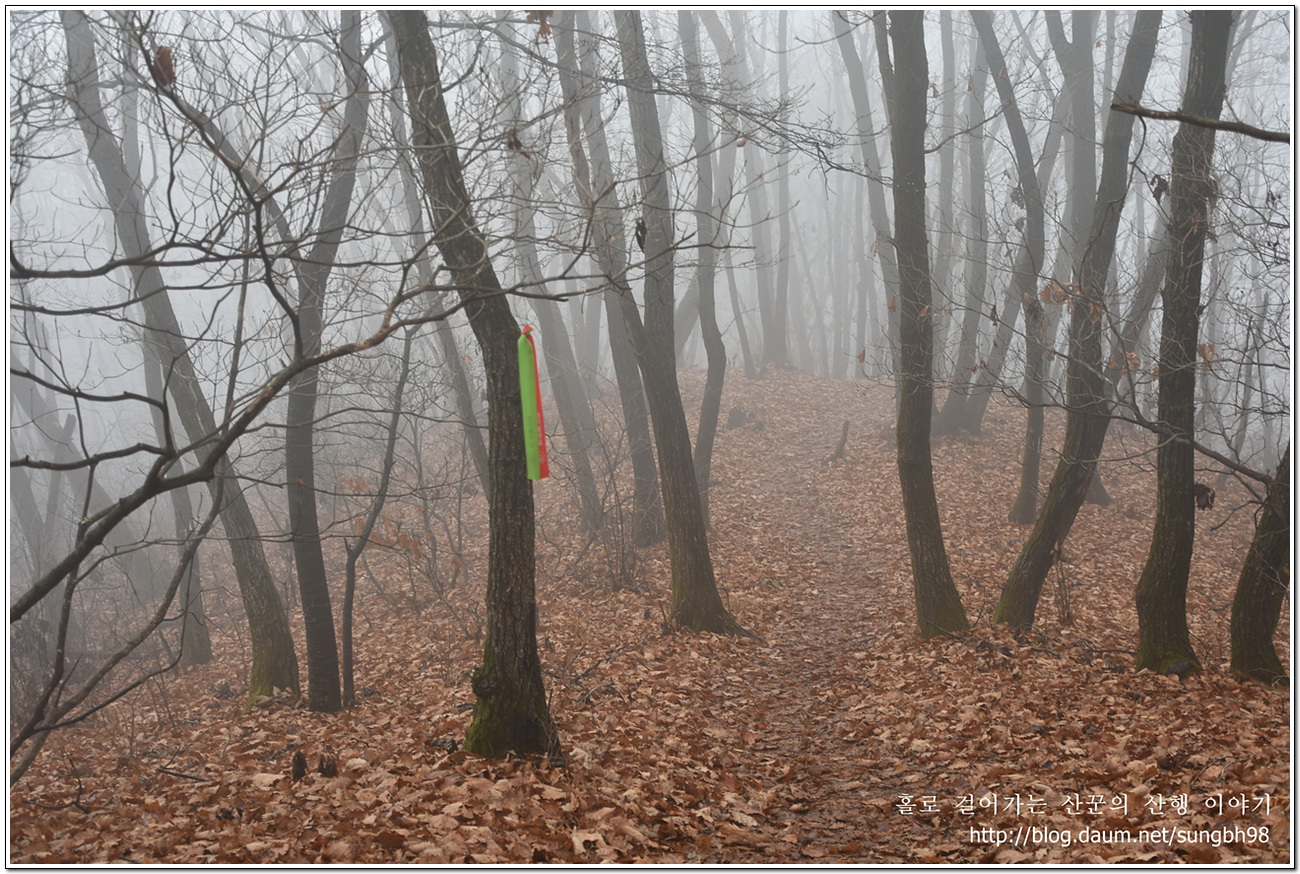 ▼ 낙엽만 수북한 한북연인지맥 마루금의 능선을 따라 걸어간다