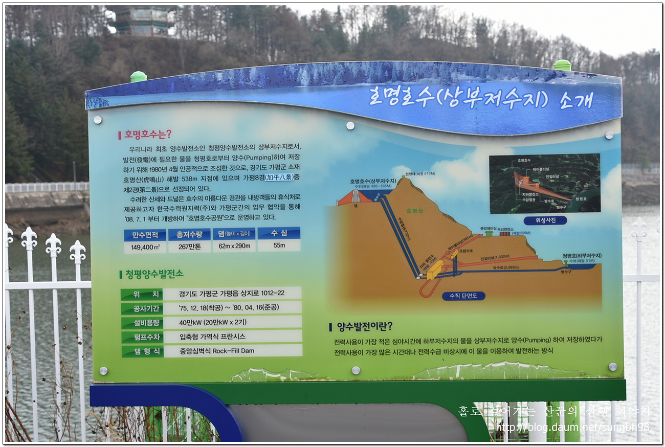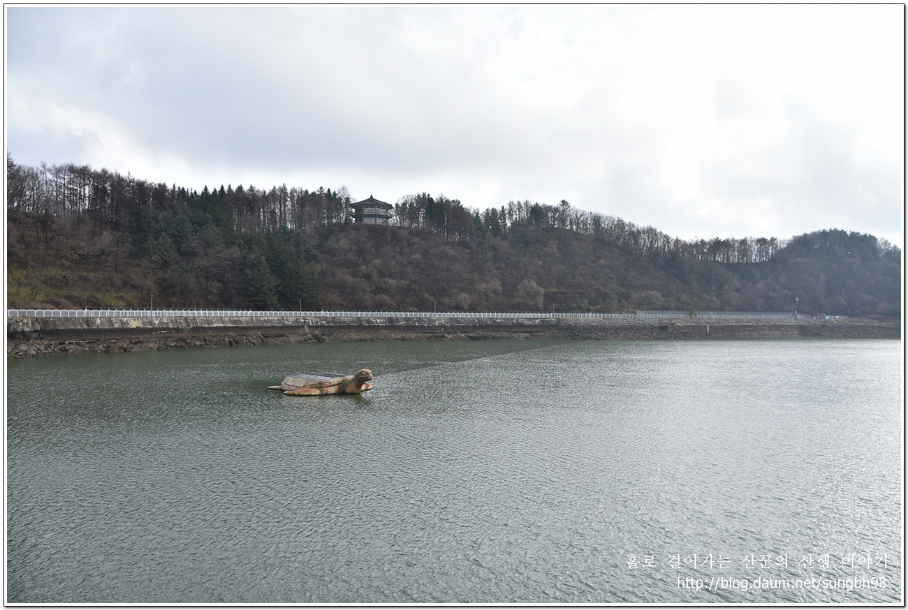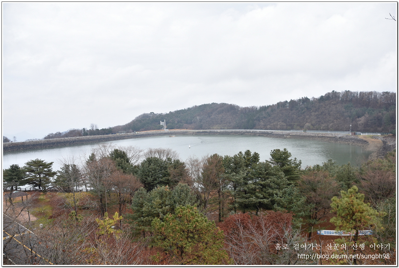 ▼ 잠시 후 전망대에 이르는데 호명호수가 보이는 곳이다