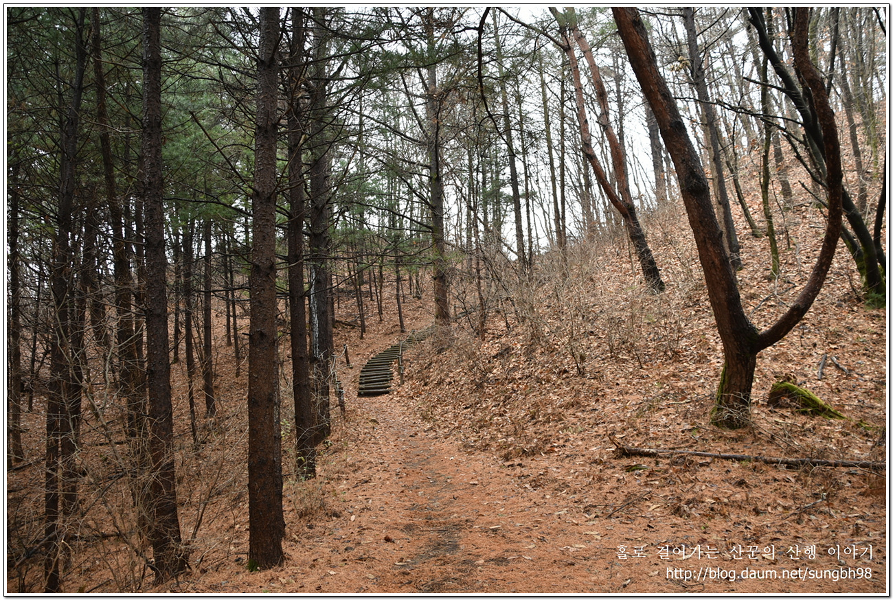 ▼ 살짝 올라선 만큼 내려가는 산길