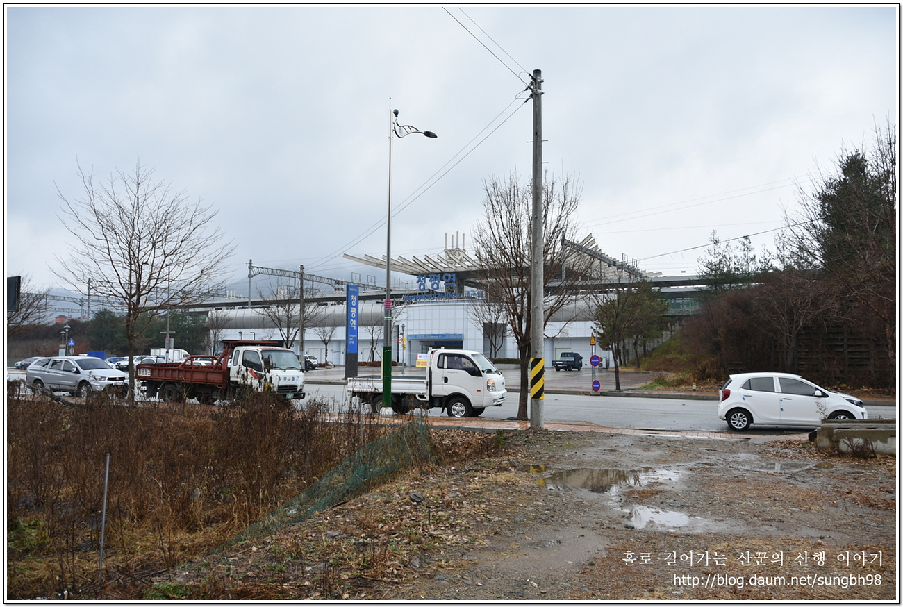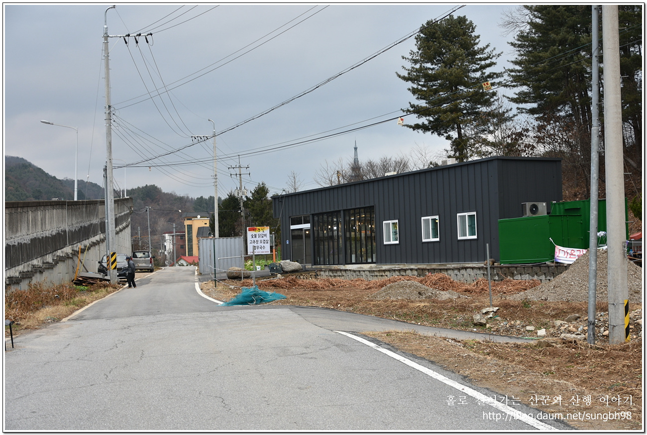▼ 우리는 우측 방향으로 도로를 따라 걸어가 과선교를 건너기 전 우측에 있는 '가온길 숯불 닭갈비'에서 산행을 끝낸다