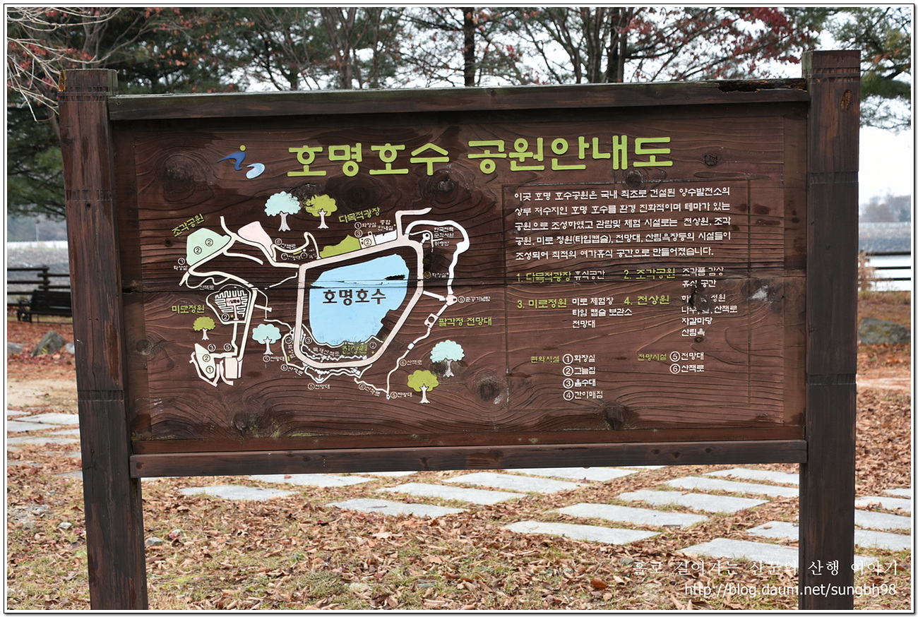 ▼ 전망대에서 내려와 만나는 호명호수 공원 안내도
