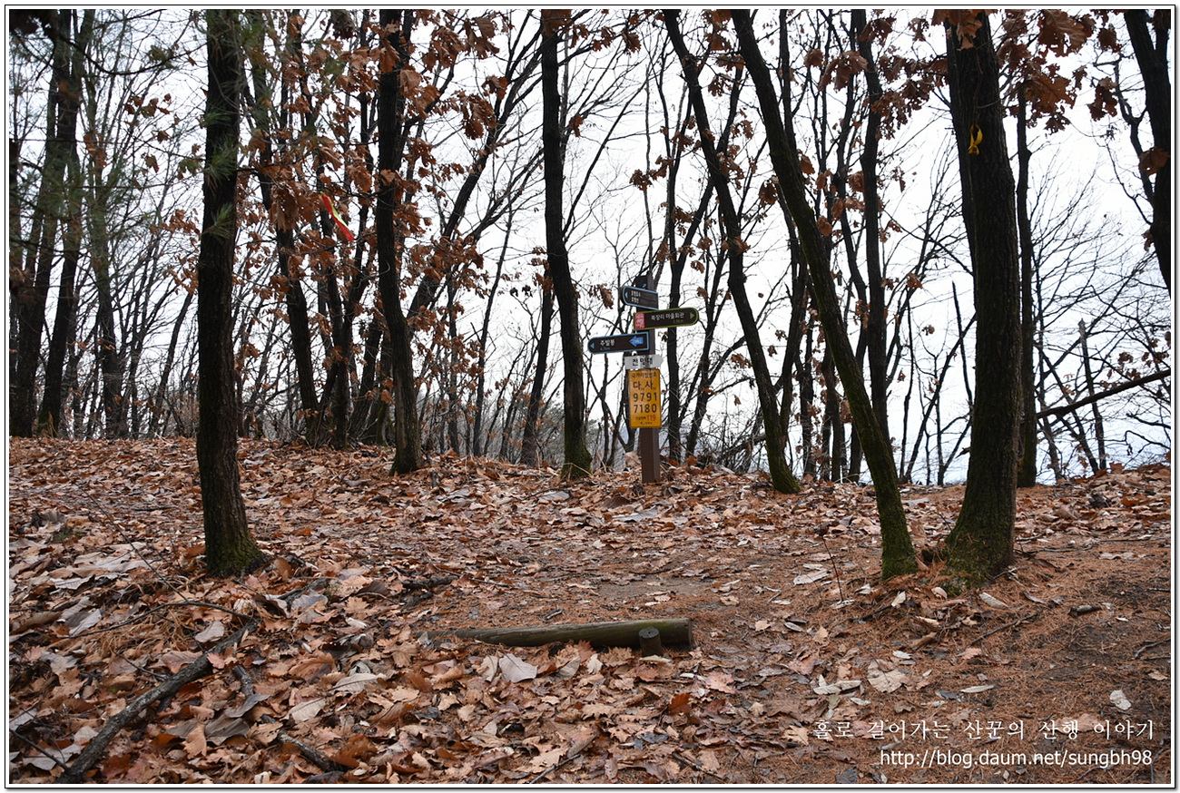 ▼ 비탈진 경사길도 이제 그 끝에 이르고 있다는 듯 이정표가 서 있는 삼거리를 지나면