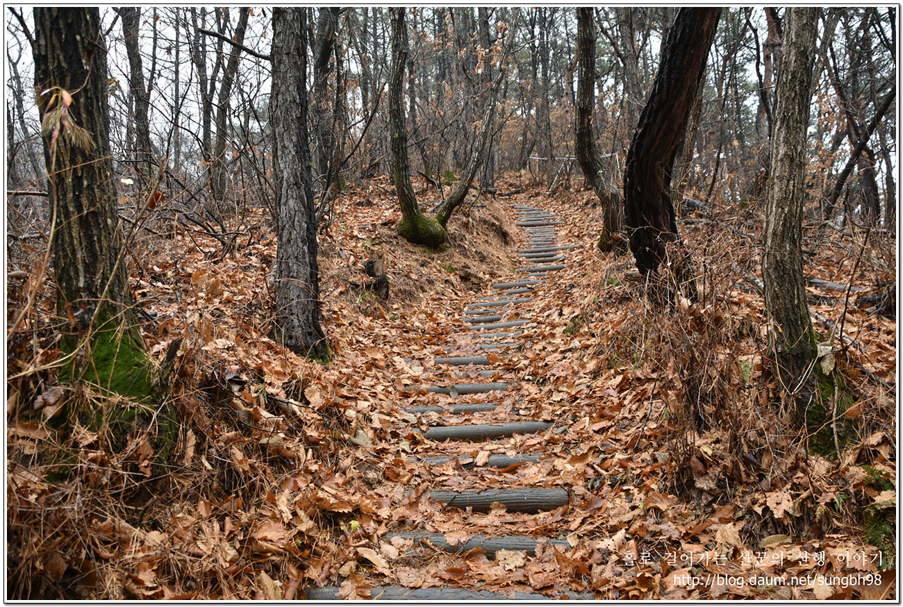 ▼ 통나무로 정비한 계단길을 올라 호명산으로 향한다